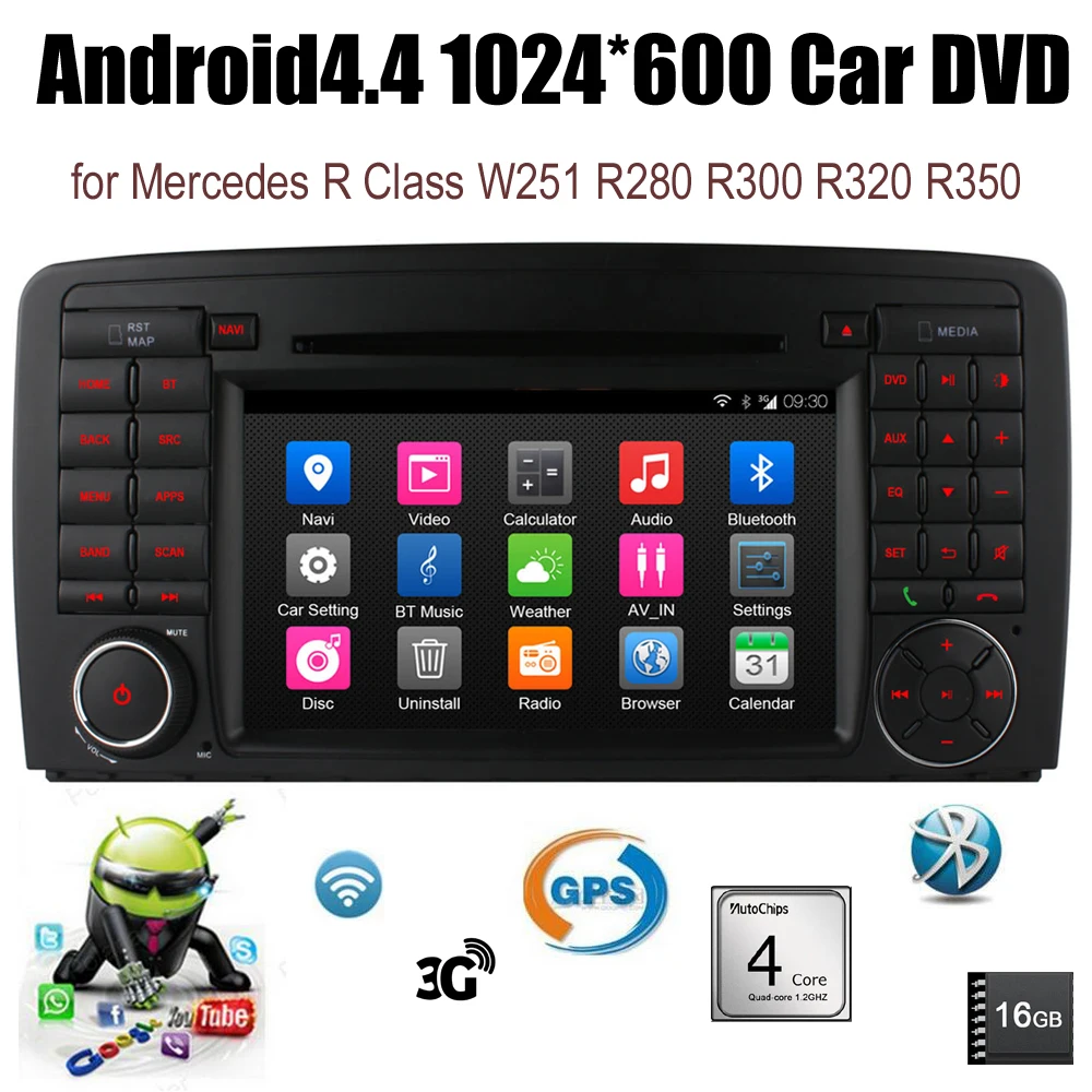 Quad Core Android4.4 1024*600 Car DVD for M/ercedes R C/lass W251 R280 R300 R320 R350 GPS Radio Stereo wifi BT support DAB Item specifics · Placement:In-Dash · Special Feature:Wifi Function · Model Name:DGS7951T · Mercedes-Benz Model:R320 · Resolution:1024*600 · Out Power:4*45W · For Vehicle Brands/Model:Me/rcedes-B/enz · Material Type:ABS · Interface:USB · Cores:Quad Core · Max External Memory:64G · OSD Language:English · Digital Media Format:CD,DVD-R/RW,DVD-RAM,Video CD,Mp3,Mp4,WMA,JPEG · ROM:16G · Display Size:7" · Voltage:12V · Special Features:Bluetooth,Built-in GPS,Cassette Player,CD Player,Charger,FM Transmitter,Mobile Phone,MP3 Players,Radio Tuner,Touch Screen,TV · RAM:1G · Item Weight:4.5 kg · CPU:AC8327 Quad Core, 1.0-1.2GHz · Operation System:Android 4.4.4 · Item type:for M/ercedes R-C/lass W251 2006-2012 · Fit for:For M/ercedes R-/Class W251 2006-2012 · Placement:In dash · OSD language:Many kinds language menu optional · Special Features:DVD player/Radio tuner/Capacitive screen/Bluetooth/TV/Built-in GPS · Wireless internet:Built-in WiFi Support 3G · Place of Origin:GuangDong,Mainland · Car Maker:for M/ercedes-B/enz Quad Core Android4.4 1024*600 Car DVD for M/ercedes R C/lass W251 R280 R300 R320 R350 GPS Radio Stereo wifi BT support DAB+ New Arrival - Android Head Unit * OS: Android 4.4 * CPU: Quad Core * Memory: RAM 1GB + ROM 16GB * Display: Digital1024*600/ Multi-touch * UI: Unique UI Design Key Features: *3S Quick Boot- Quick boot during the 48 hours long sleep time *Screen Mirroring- easy connected with iPhone & Android Phone (via USB or WiFi) * Play music from iPod/iPhone & charging via USB cable -support all iPhone/iPod * Support to connect and work withDAB+ / DVR / TPMS / DTV / OBDII Function Included:FM/AM Radio + RDS + GPS + Bluetooth + Multimedia(USB/SD) + AUX in + iPod/iPhone + Screen Mirroring + Built-in WiFi+DVD Multi-supported:DAB+, DVR, TPMS, Digital TV, OBDII, Rear Camera, External Mic... FIT FOR ForM/ercedes R-C/lass W251 2006-2012 Note:Please check the shape and dimenisons of the front panel in below photoes, to avoid you choose a wrong item which doesn't fit your car, thanks. General Information Operation System Android 4.4.4 CPU & Frequency Quad Core, 1.0-1.2GHz AC8327(TheICisSpecialydevelopedforCarDVD) RAM DDR 3 1G Nand Flash Memory Built in16GB Menu(OSD) Languages Russian, English, Chinese, Spanish, Portuguese, Italian, French, Dutch, Turkish, Swedish, Norwegian, Polish, Japanese, Korean, Malayu, Indonesian (over 60 kinds) Standard Features GPS Navi + FM/AM Radio + Bluetooth + Multimedia + Mirror Link + USB/SD + AUX+Support IPOD Optional Accessories TPMS;3G Dongle; DVR;Rear Camera; DVB-T2/DVB-T MPEG4/ISDB-T Digital TV Box etc (have extra cost) Display Display Digital TFT LCD Monitor 16:9 Resolution 1024*600 Touch Screen Capacitive Touch Screen Internet WiFi Built-in WiFi, 802.11b/g/n, compatible WLAN 3G Support WCDMA, 3G dongle excluded GPS GPS ANT Chip MediatekMT3332N Sensitivity -160 dBm Start Cool<26S, Hot 1S Accuracy <5m Map Storage Built-in Flash or SD Card Maps Support iGo, Navitel,Tomtom, Sygic, Google map online etc DVD if applicable Type of Disc 12cm disc Compatible Disc DVD-Video, DVD-Audio, DVD±R/RW, DVD-ROM; CD-DA, CD-R, CD-RW; Video CD, DVCD Pick up HOP-1200XH (HITACHI) Decoding IC AC8327 Multimedia 1080P Video Play Support Video Format avi, mkv, mov, mp4, mpeg, mpg, rmvb, flv, H.265 ect. Audio Format MP3, WMA, AAC, RM, FLAC etc. Photo JPG, BMP, JEPG, GIF, PNG ect. Radio FM/AM Frequency FM: 87.5MHz~108MHz; AM:522KHz~1620KHz Pre-set Stations FM 3*6; AM 2*6 RDS Support Radio IC ST 7786 Bluetooth Bluetooth Ver. Bluetooth v3.0, Support A2DP Phonebook Support Microphone Built in (External Support) File Management Main Functions Support download, install and delete over thousands of android apps Official Software Edit Support read and edit Word/Excel/Powerpoint/PDF/TXT Desktop Applications Weather, Clock, Wallpaper (live wallpaper or DIY wallpapers from Gallery Pictures) Communication Tools Skype, Gmail, Twitter, Facebook, VK etc 3D Games Support Hardware Specifications Working Voltage DC+10.8V--14.4V Max Power Output 4*45W AMP IC ST7388 RCA Input/ Output Audio output*4, Subwoofer*1, Video output*2; Aux in*1, Camera input*2 Input/ Output Type CVBS, Support NTSC/ PAL format Working/Storage Temp -20°-- +70°/ -40°-- +80°